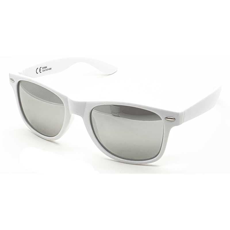 Hvide Wayfarer solbriller – Sølv spejlglas