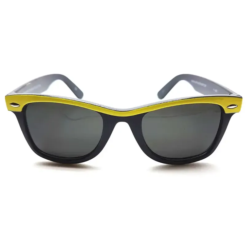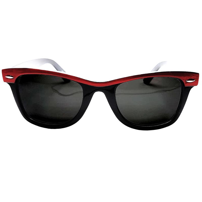 Sorte Wayfarer solbriller hvor toppen og stængerne er farvet.